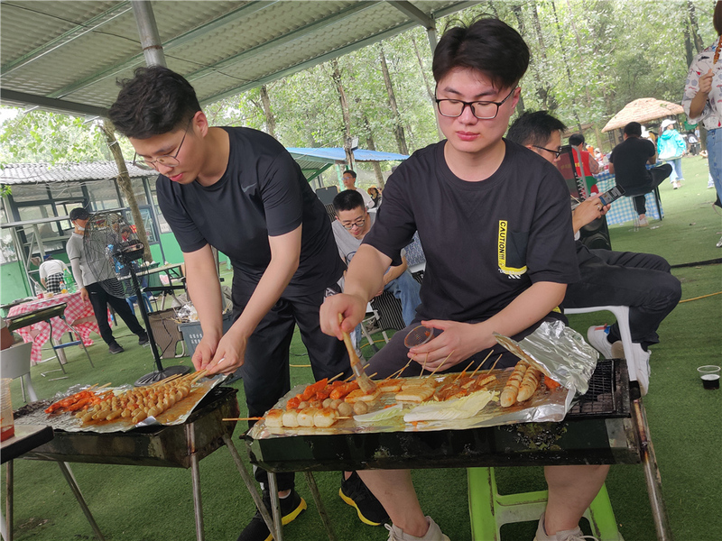 在旅游觀光車的導引下,我們順利到達了清清燒烤莊園。團建過后,自然而然到了午餐時間,大家都迫不及待地組團開飯,小伙伴們不緊不慢地配合著,忙得不亦樂乎。酒足飯飽以后,大家各自行動,玩起了打牌、狼人殺、卡丁車、越野車等游戲。