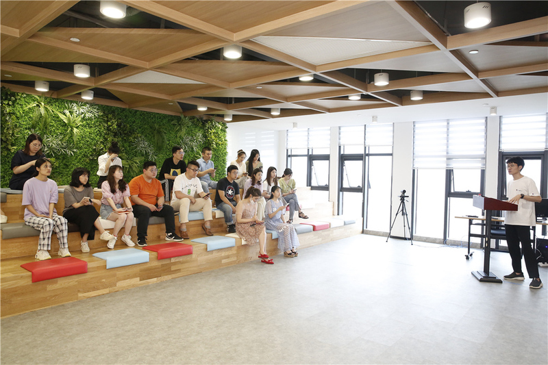 課程講師由綜合行政部盧政嘉擔(dān)任,小伙伴們利用中午休息時間,一起來到27樓階梯教室參與剪輯課培訓(xùn)。盧老師早已提前錄制好當(dāng)天的課程教學(xué)視頻,一邊給我們展示該款A(yù)PP的各個操作按鈕,一邊還讓我們用課前發(fā)下的視頻素材進行實操練習(xí)。碰到不懂的地方,現(xiàn)場小伙伴們也積極提問,踴躍爭做盧老師眼中的“好學(xué)生”。