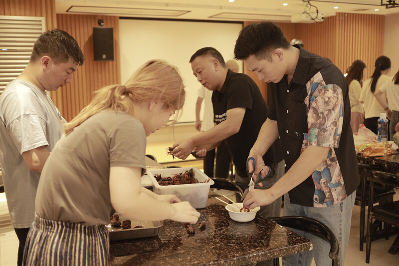 對于大部分人來說,從陌生到熟悉需要一段時間,而團建大大縮短了這些時間。在這天,大家展現了與工作時不一樣的一面。你會發現,工作時一絲不茍的龔總原來是一位隱藏的大廚,獨屬小龍蝦的鮮香在他嫻熟的烹飪技巧下被牢牢鎖住,裝盤、端出、撒上蔥花,簡直色香味俱全。男同事們不約而同展示的紳士風度以及大家的團結合作精神也讓大家感觸頗深。