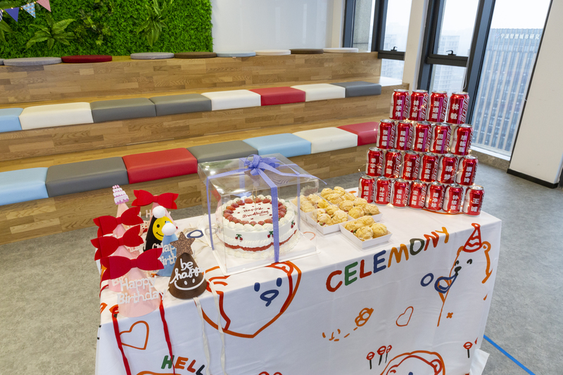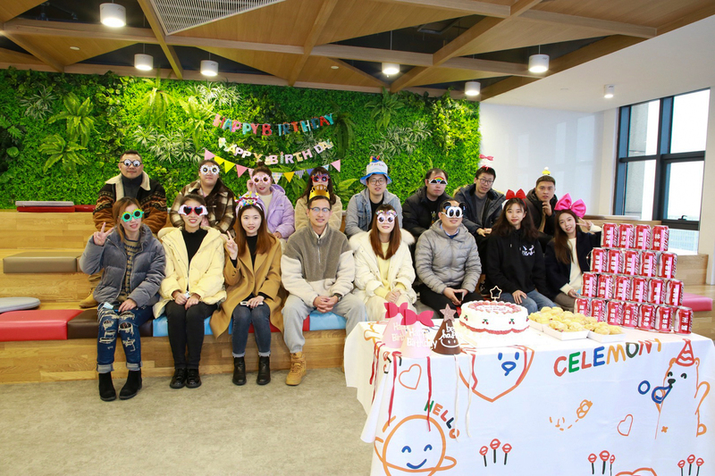來(lái)到27樓知行合一教室,一走進(jìn)便看到“Happy Birthday”的掛旗以及擺放在桌子上精美的草莓蛋糕和泡芙。16位伙伴坐在一起,聽(tīng)著生日祝福歌,氣氛十分融洽。拍照道具也十分的搞怪和用心,有各式各樣的眼鏡和帽子,集體照拍出來(lái)效果也很可愛(ài)。期間進(jìn)行了切蛋糕和游戲環(huán)節(jié),筆者被抽中為大家唱了首歌,得到大家對(duì)我的鼓勵(lì)。生日代表著自己長(zhǎng)大一歲,能與這么多小伙伴一起見(jiàn)證成長(zhǎng)是件幸運(yùn)的事情,離場(chǎng)之前收獲到公司準(zhǔn)備的印刷著各自名字的定制版可樂(lè),讓人心生暖意,感受到策劃組的同事的用心。
