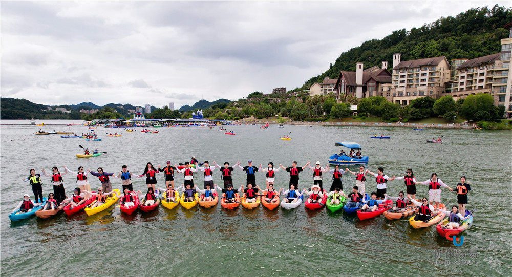 當(dāng)夕陽熔金,將千島湖染成一片溫暖的橙紅,精疲力盡的我們索性躺在皮劃艇上,隨波輕蕩。回望這片“戰(zhàn)場(chǎng)”:摩托艇拖曳著“水上飛魚”凌空翻騰,驚叫與歡呼劃破天際;遠(yuǎn)處,仍有伙伴在浮板上努力穩(wěn)住身形,笑聲陣陣。定格發(fā)梢滴落的水珠,這一刻終于懂得:并肩作戰(zhàn)時(shí)濺起的每一朵水花,都是這個(gè)夏天最爽快的勛章;濕透衣衫的汗與湖水交融,才是團(tuán)隊(duì)勝利最珍貴的印記!